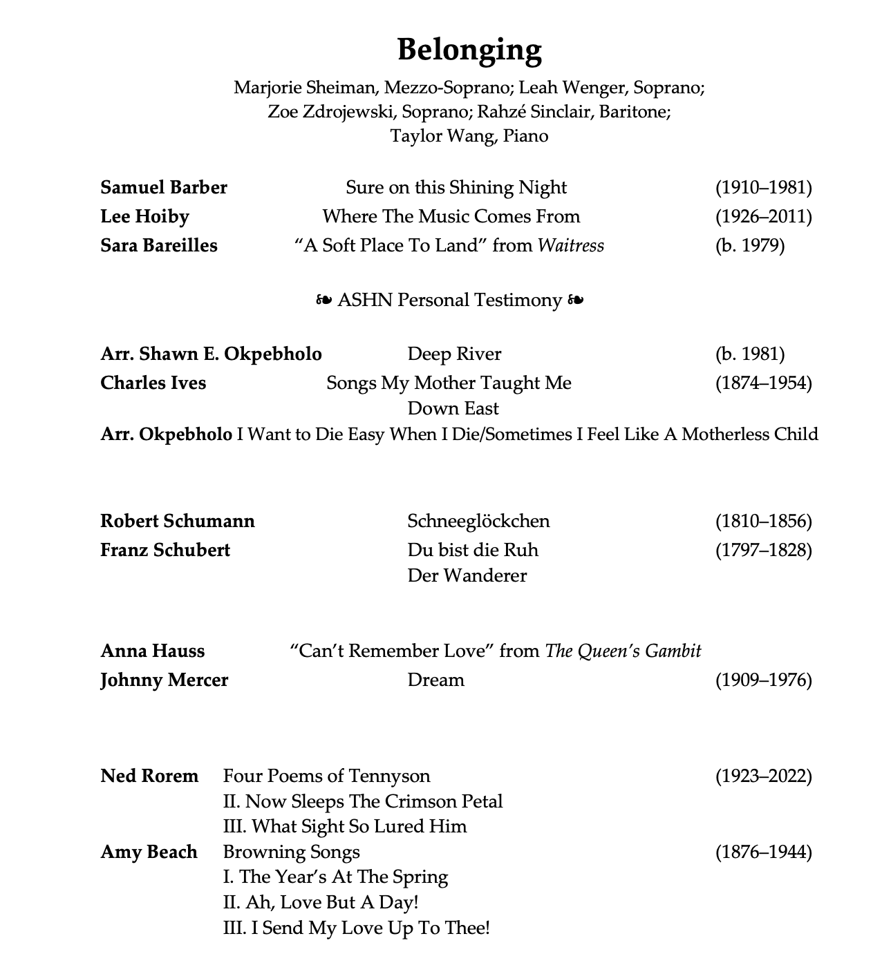 Belonging was a recital for the Asylum Seekers Housing Network and Reservoir Hill House of Peace fundraising and benefit concert right here in Baltimore. Organized in part by musician and musicologist Leah Wenger, financial gifts and ticket proceeds went on to support food, housing, and living stipends for asylum seekers living at the RHHP. The event served as a chance to help make a difference for many in Baltimore City who are dealing with violence and trauma that can follow them across the world.